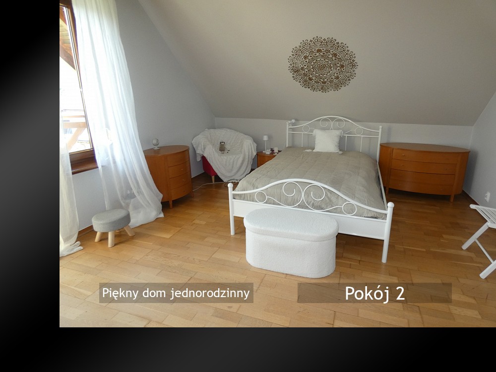 ŻYWIEC - piękny dom jednorodzinny o pow. 136 mkw, położony w terenie płaskim na działce o pow. 1435 mkw. Skład: Salon z kominkiem (bez rozprowadzeń), 4 pokoje, pokoik przejściowy, kuchnia, 2 łazienki, hall, duży przedpokój, garderoba, garaż, pom. gospodarcze, 3 balkony, taras. Media: prąd (siła), wod-kan miejska, studnia (bez podłączenia), gaz, panele solarne + bojler (ciepła woda), fotowoltaika + magazyn energii (opłaty za prąd przez cały rok tylko 40 zł /m-c), alarm, monitoring, ogrzewanie gazowe - grzejniki panelowe, a na parterze w kuchni, łazience i w hallu podłogowe. Częściowe wyposażenie w cenie, dach kryty dachówką ceramiczną, okna drewniane. Wspaniała lokalizacja z całorocznym dojazdem drogą asfaltową, luźna zabudowa, działka ładnie zagospodarowana z dodatkowym garażem murowanym wolnostojącym.